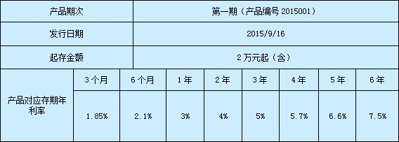 2.存款方式:约定存期为六年,一次性存入本金,一次性支取,支取时按照实际存期对应的固定利率支付利息。客户办理该产品后可随时全额支取,但不可部分提前支取。