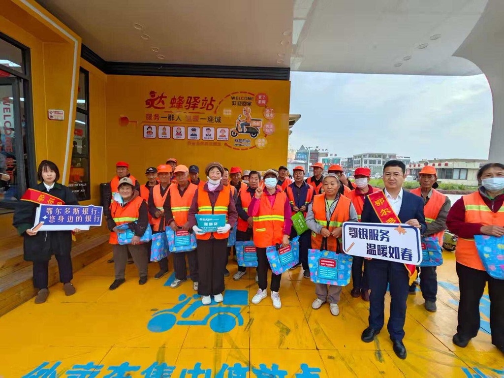 鄂尔多斯银行工作人员在现场开展业务宣传,与户外工作者互动交流,展现金融机构参与公益、服务民生的责任。活动通过多方协作,不仅为户外工作者提供实际帮助,也搭建了社区与服务群体间的沟通桥梁。