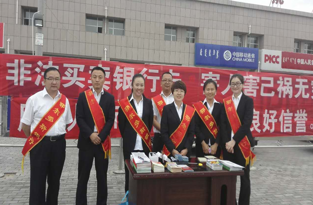 为进一步提高广大群众的反洗钱意识,有力打击犯罪活动,维护社会经济稳定,上海庙支行于近日开展了反洗钱宣传活动,本次宣传活动在营业室设置反洗钱宣传台,并摆放反洗钱知识宣传折页,同时利用下午下班时间组织全行职工,统一着装,佩戴鄂尔多斯银行绶带,横挂条幅“警惕洗钱陷阱”在上海庙镇就业市场人员流动密集区举行反洗钱宣传活动。现场解答群众提出的疑问,并就反洗钱知识宣传册中的条款内容向群众进行讲解。