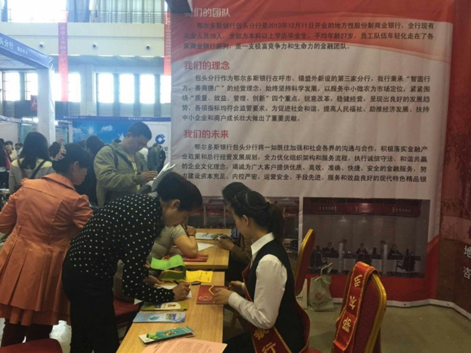 这是包头市政府为全面贯彻自治区“8337”发展思路和包头市“5421”战略目标,积极探索研究金融和企业协调发展、相互促进的新模式,进一步增进金融机构与企业的合作沟通的良好平台而举办的全市大规模的银企对接会。包头分行作为入驻时间较短的地方金融机构,积极参与的主要目的有两个:一是向其它金融机构学习如何与企业对接和对大中型企业的金融服务方式,探索发现符合我行实际的银企合作新模式;二是进一步向全市各大中型企业宣传展示我行良好的企业形象及精神风貌。