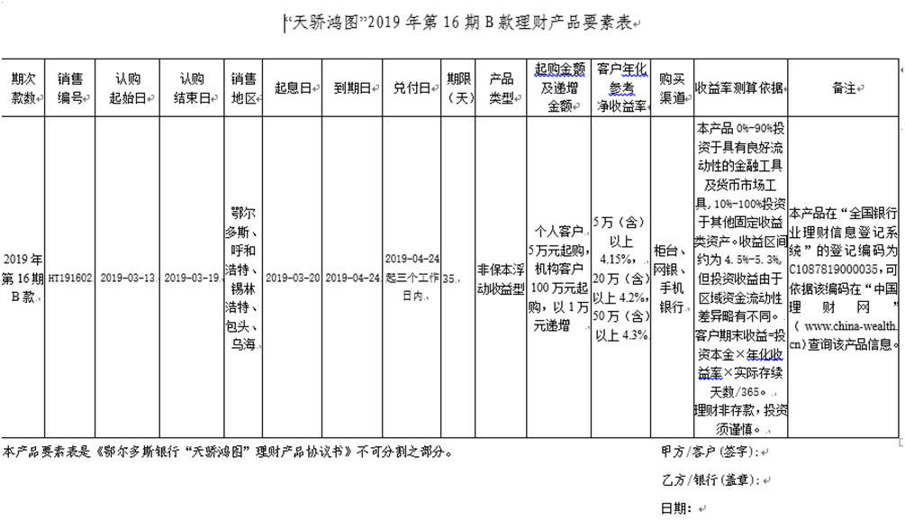 天骄鸿图2019年第16期B款理财产品募集公告(2019年3月13日更新)
